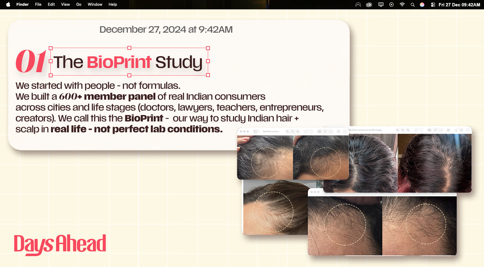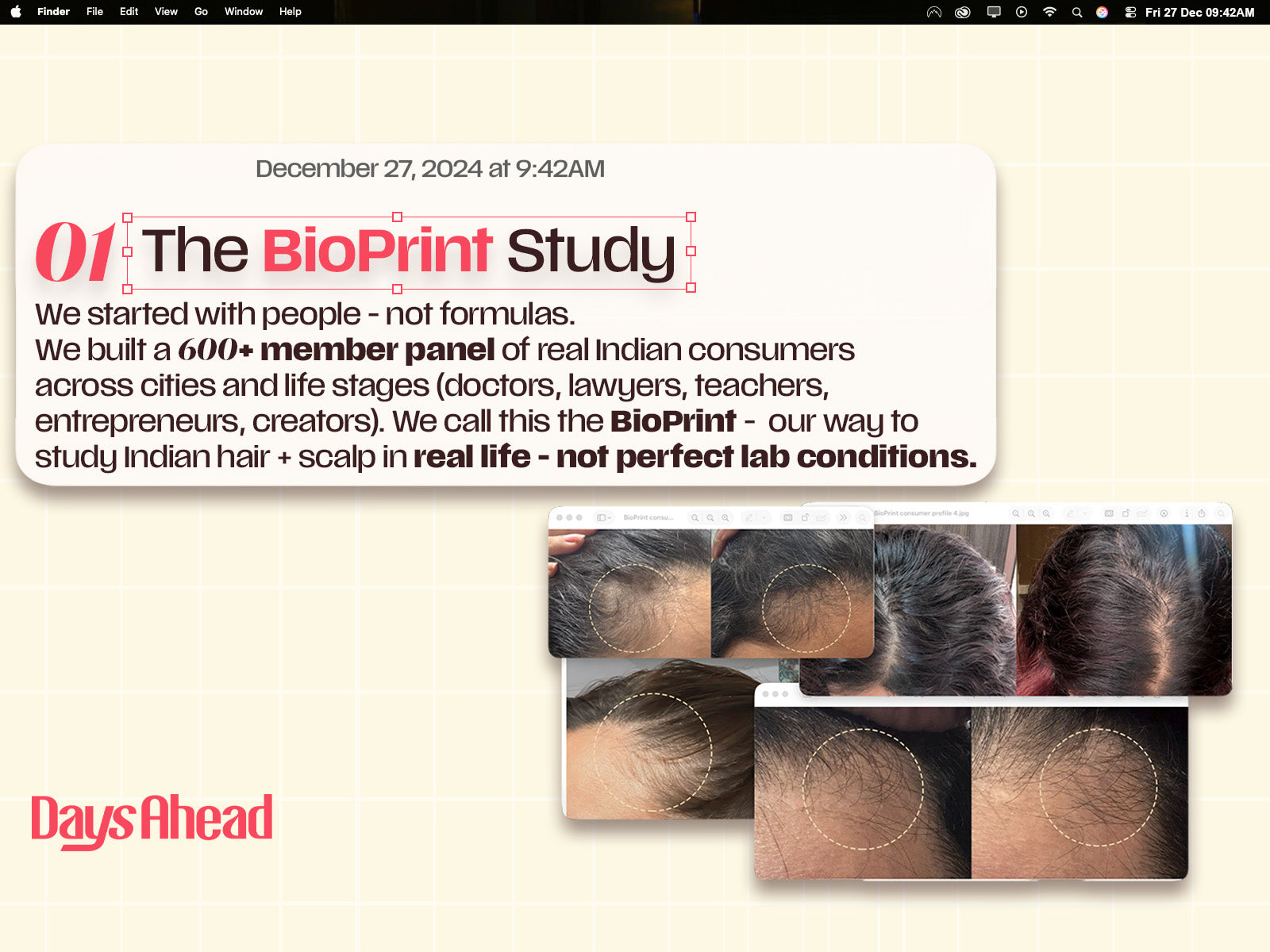 Significantly less oily roots, even on the fourth day of washing with visibly fewer flakes and more hair volume